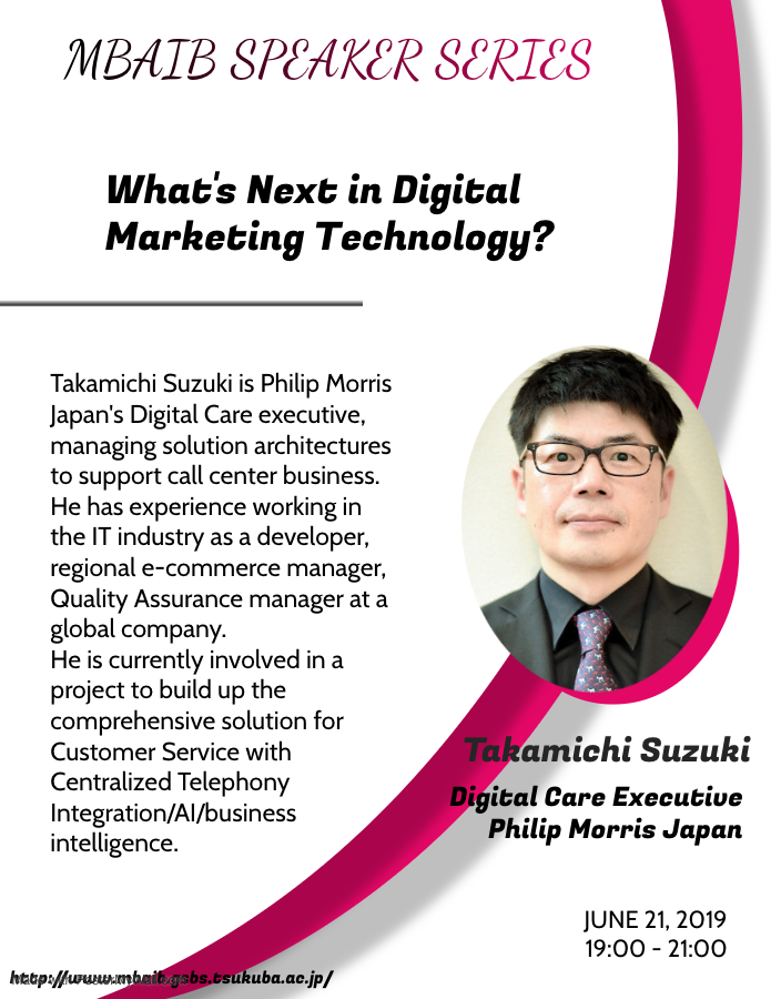Welcome to another round of Tsukuba MBAIB's Speaker Series for 2019.